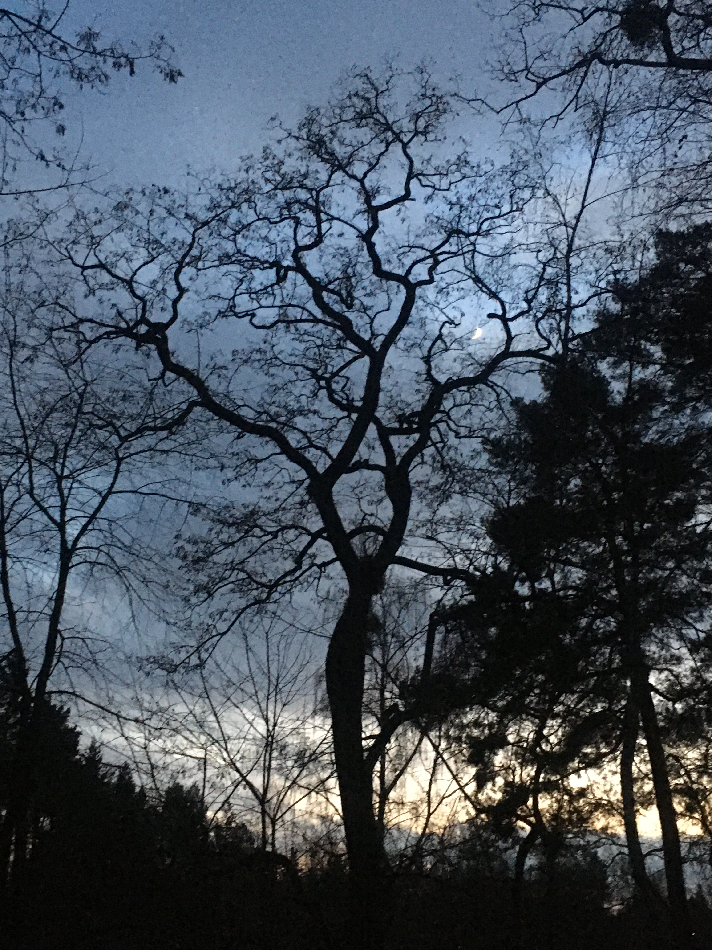 Vor ein paar Wochen publizierte ich hier Fotos von einem Spaziergang in der Zehlendorfer Abenddämmerung, darunter auch das folgende: