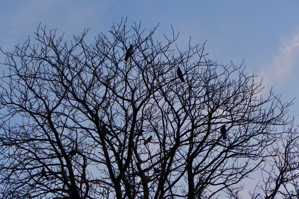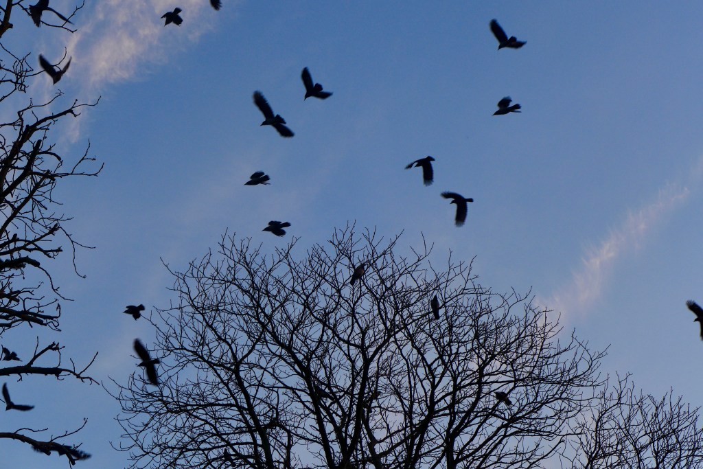 Ich treffe immer dieselben Menschen. Die freundliche Joggerin, die ihre Freundinnen, die Krähen immer mit Brotkrumen füttert. Menschen, die ihre in der Dunkelheit LED-erleuchteten Hunde ausführen.
