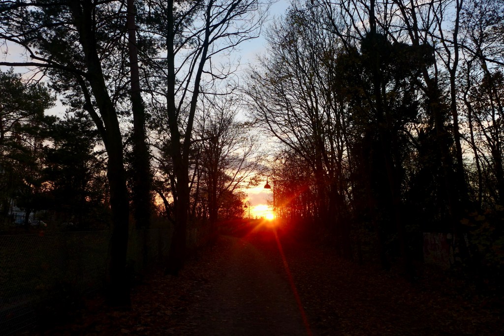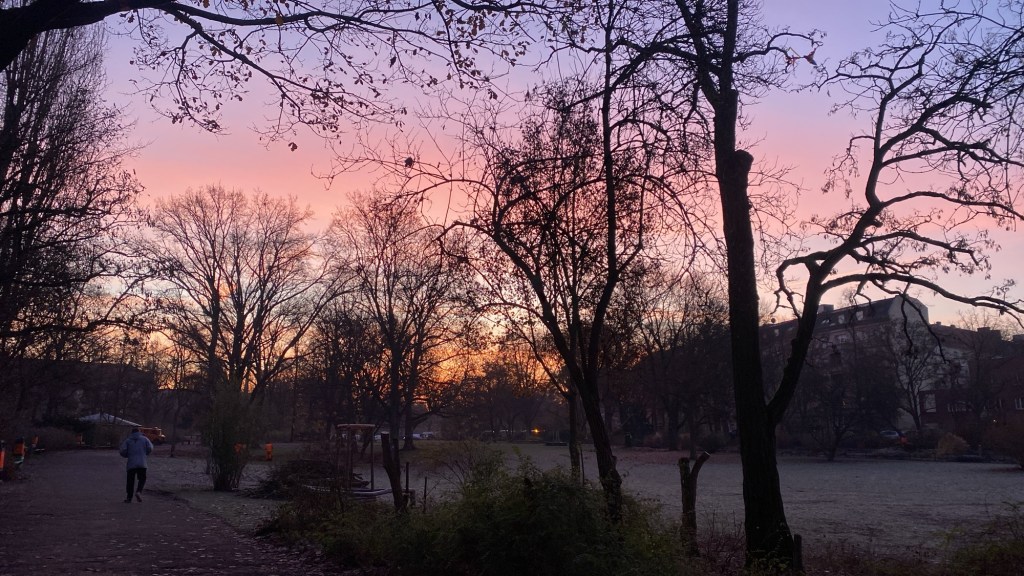 Mein Weg führt fast nur durch den Park, in dem ich in den vergangenen Wochen auf raschelnden Blättern laufen konnte.
