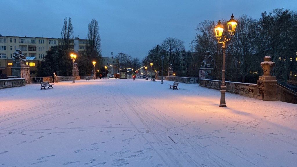 An einem anderen Morgen lag morgens auf der Brücke durch den Tag noch der Reif und ein bisschen Schnee aus der eiskalten Nacht, die gerade zu Ende gegangen war.