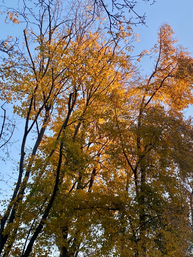 An einem Tag, ich war etwas später unterwegs, lag das Gold Ende Morgenlicht zunächst auf Baumkronen und wuchs dann ganz langsam immer weiter in Richtung Erdboden.