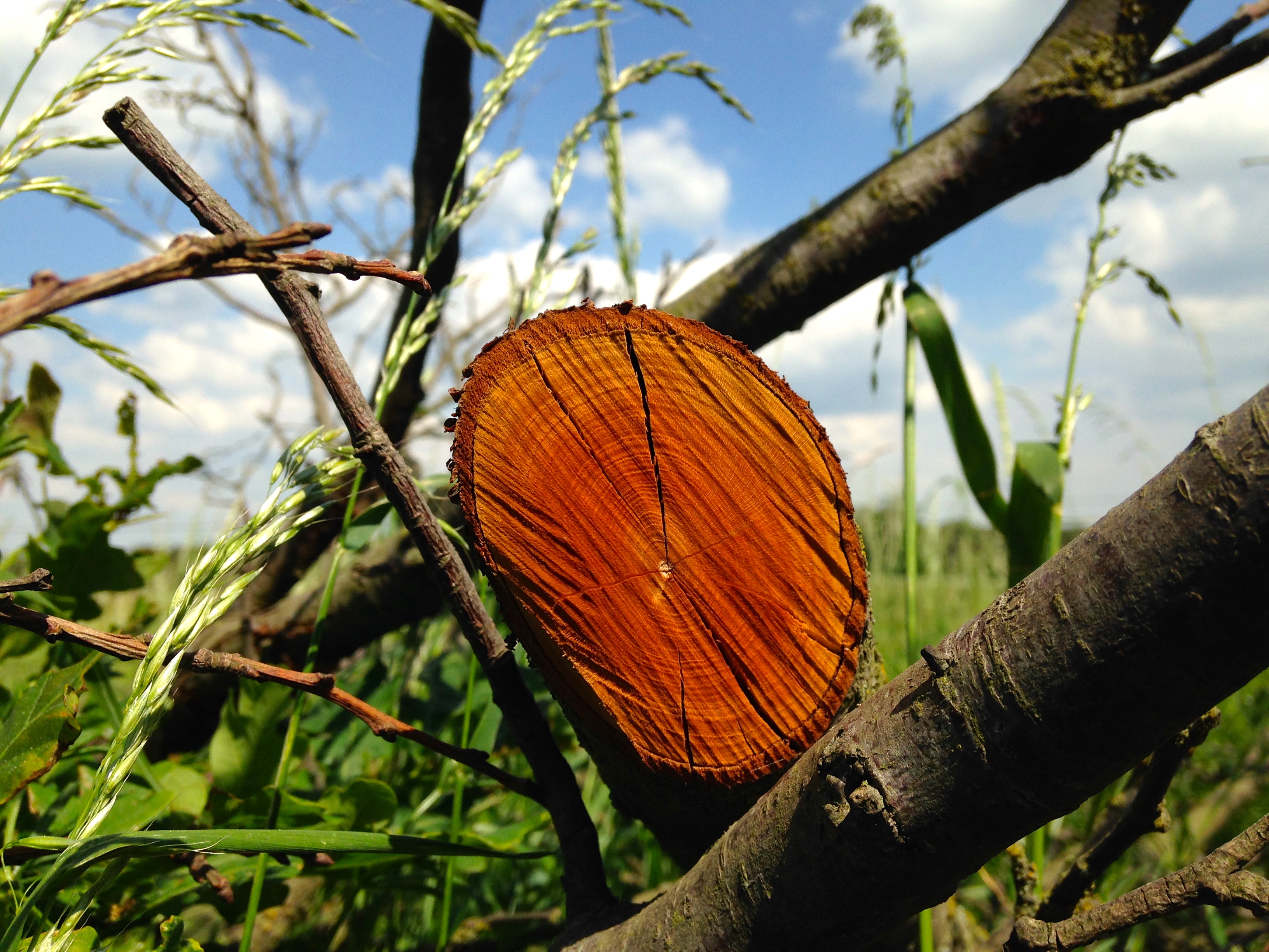 Drei zersägte Baumstämme ziehen den Blick auf sich. Strukturen und Farben machen sie zu etwas ganz Besonderem.